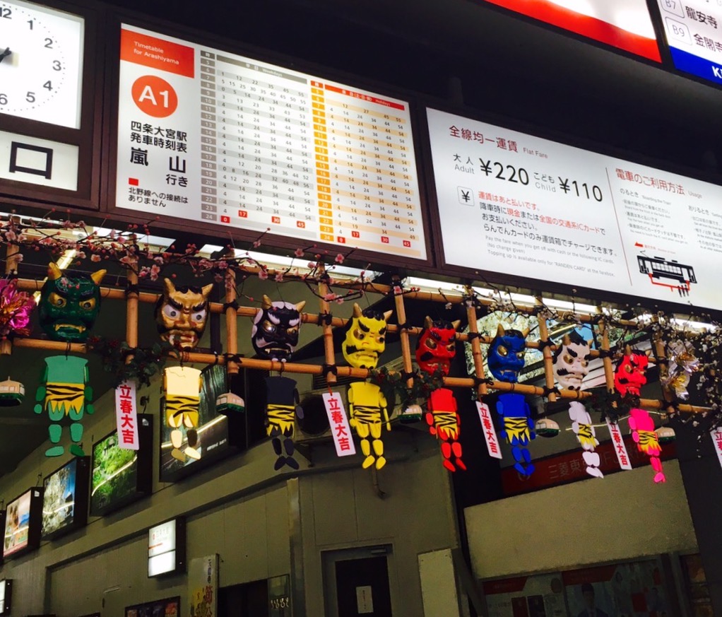 京都の街中と嵐山を繋ぐ電車「嵐電(らんでん)」の四条大宮駅では