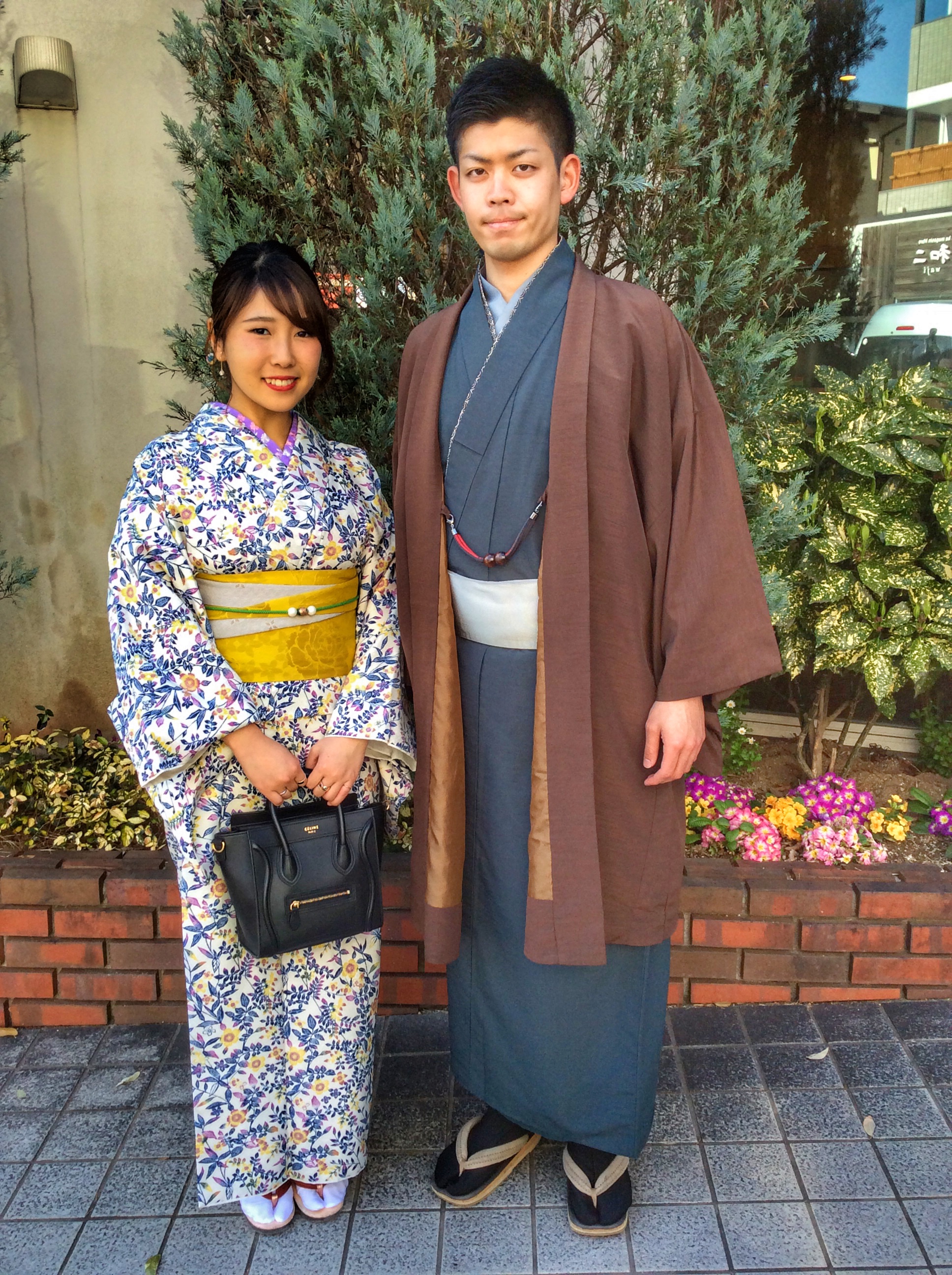 今の時期にとってもあう涼しげな小花柄のお着物(左)