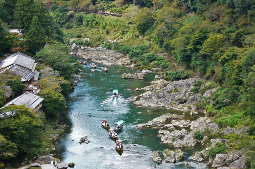新緑広がる自然の中で保津川下りなんていかがでしょう❓