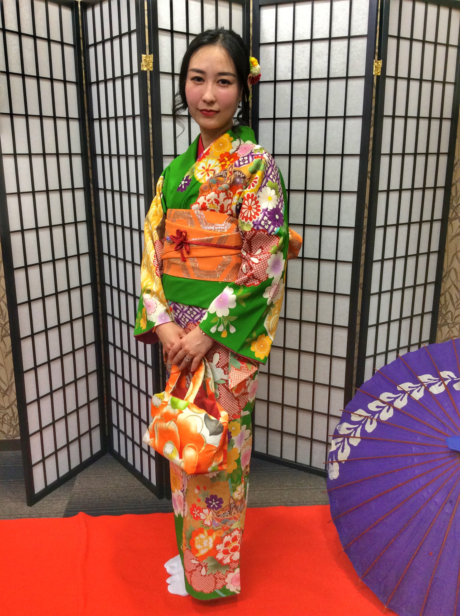 緑の華やかなお着物を選ばれました👍