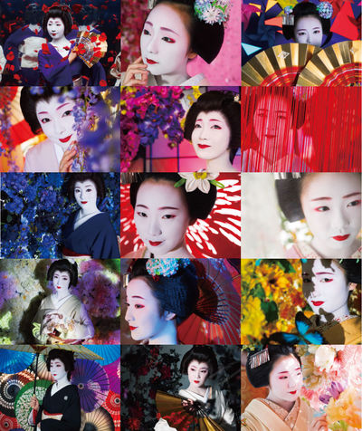 展示は、京都の伝統的な美学の粋が蓄積された「花街」と、四季折々の美しい京都の「景色」