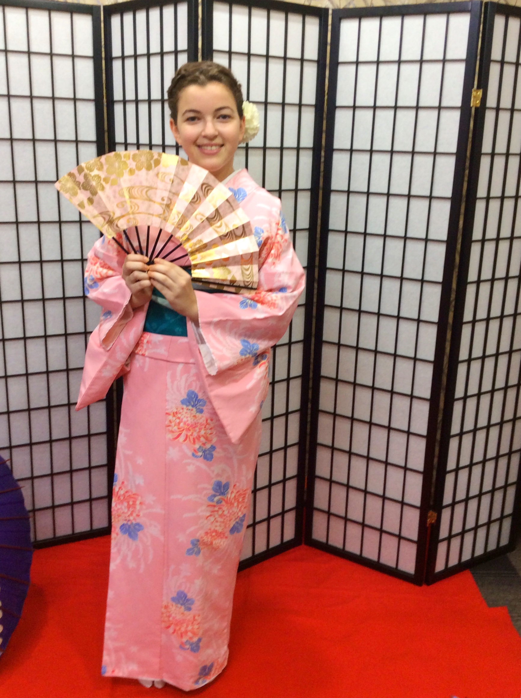 スタッフおすすめは、和風のついたてをバックにiPhoneについているポートレート機能での撮影です