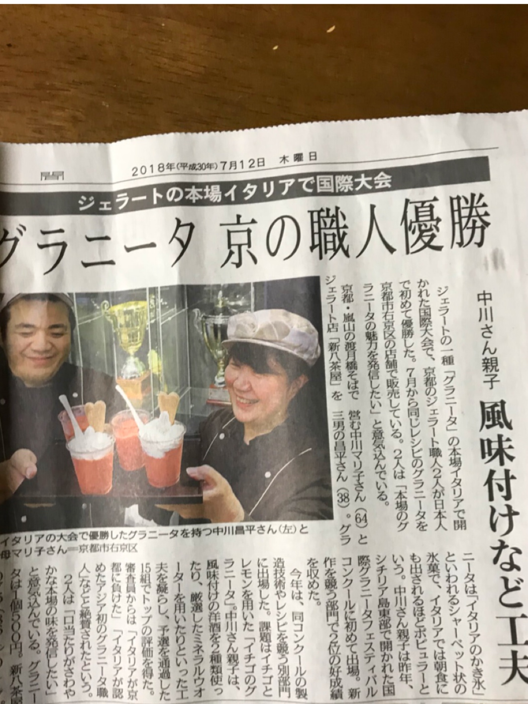 ジェラートの一種【グラニータ】の本場イタリアで開かれた国際大会で日本人初⭐️の優勝🏆スゴイですね✨✨