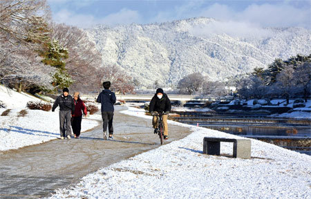 師走の鴨川や帰省でにぎわう街なかに白雪が舞いました!(゚∀゚)!