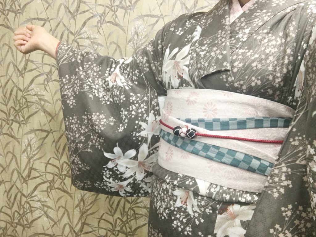 かすみ草の柄が少し雪にも見えるこの着物👘は