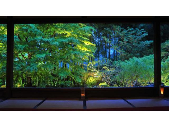 京都大原の「額縁庭園」で有名な宝泉院では4/20〜新緑を照らすライトアップが行われます。