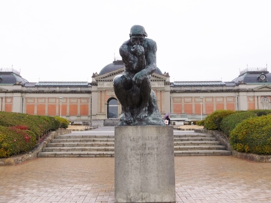 本館と正門との中間に位置するこの彫刻、オーギュスト・ロダンの傑作彫刻『考える人』。日本国内には数体のオリジナルが存在しており、京都国立博物館の敷地内に置かれているこれも、そのうちの一体。意外性があって面白いですよね?
