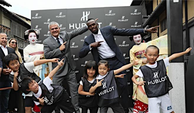 5日京都の祇園で開かれたスイスの高級時計ブランド「ウブロ」の開店イベントに登場。